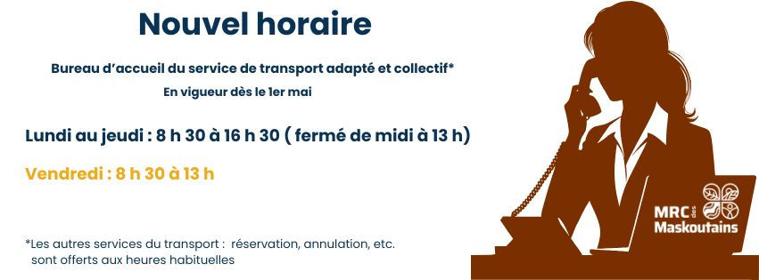 * Les autres services du transport : réservation, annulation… sont offerts aux heures habituelles.